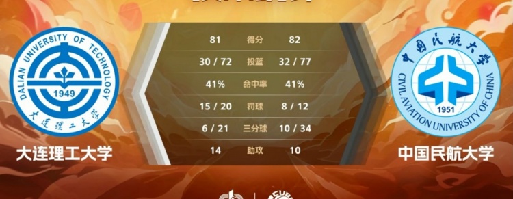 末节决战,孙诗强攻先中一球,于丰宁篮下接球迅速上篮得手,张天骐飞身上篮还有,班步三分突施冷箭帮助中国民航迫近比分,马梓豪打成2+1引领球队7-0的攻击波追到2分,于丰宁篮下得手止血,关键时刻杨驷俊三分反超,大连理工两罚全中夺回1分优势,李波翰强攻得手,张天骐绝杀不中,最终,中国民航82-81逆转大连理工。
