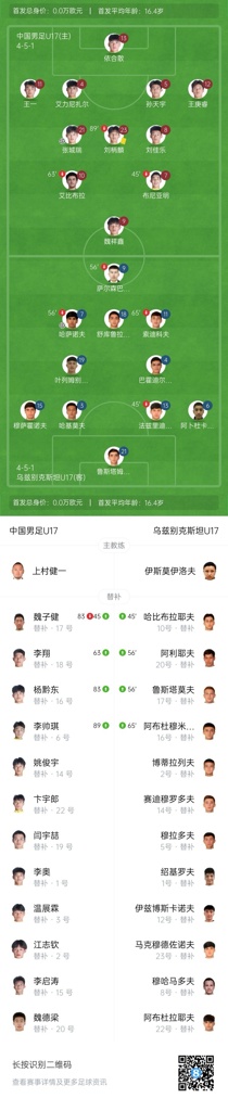 全场比赛结束,国少1-2遭乌兹别克斯坦逆转。