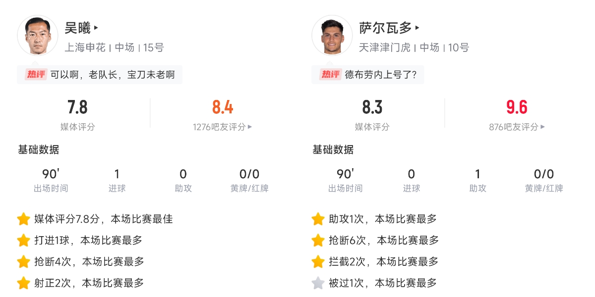 @蝎子:克雷桑用近乎完美的表现,一人之力掀翻升班马后防线,现中超第一“大腿”实至名归。
