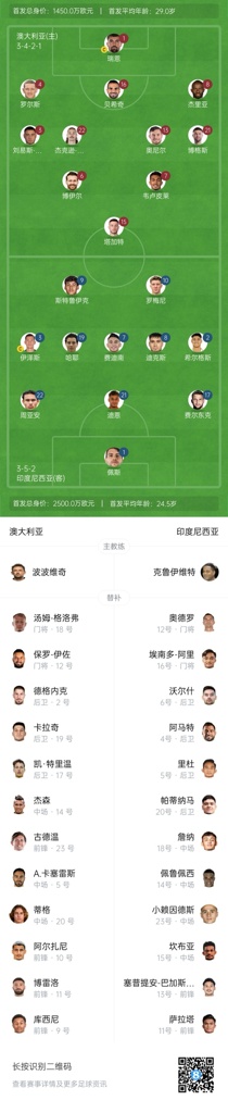 澳大利亚替补:18-格洛弗、12-保罗-伊佐、2-德格内克、19-卡拉奇、17-凯-特里温、14-贾森-戴维森、23-古德温、5-卡塞雷斯、20-瑞安-蒂格、10-阿尔扎尼、11-博雷洛、9-库西尼